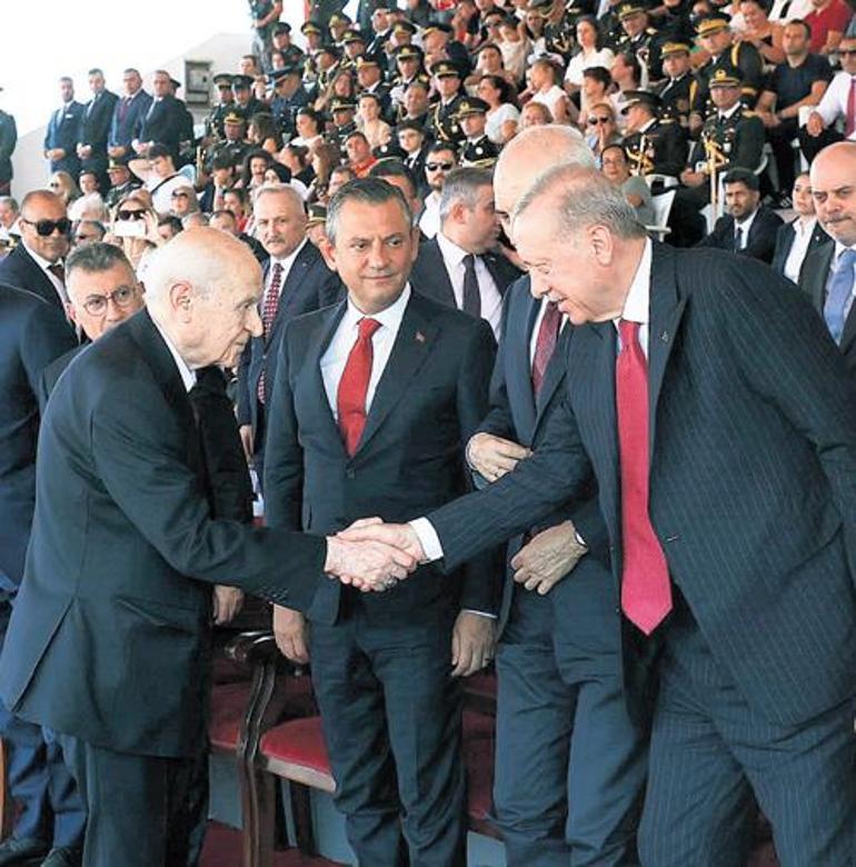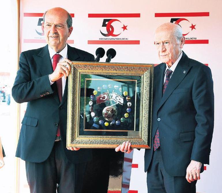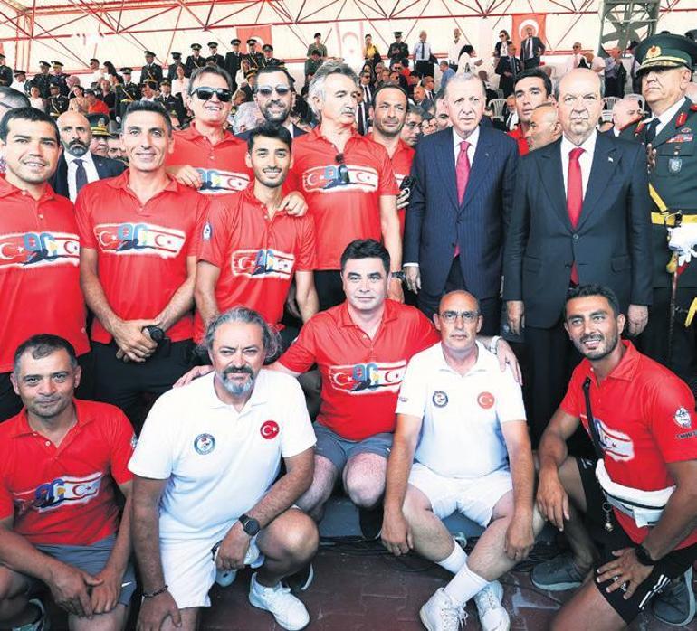 Kıbrıs Barış Harekâtı’nın 50. yıl dönümünde gerçekleştirilen 20 Temmuz Barış ve Özgürlük Bayramı törenleri kapsamında ilk olarak Cumhurbaşkanı Recep Tayyip Erdoğan ve KKTC Cumhurbaşkanı Ersin Tatar, Atatürk Anıtı’na çelenk sundu. Fazıl Küçük Bulvarı’ndaki tören alanında Cumhurbaşkanı Erdoğan ve KKTC Cumhurbaşkanı Tatar, katılımcılara hitap etti. MHP Genel Başkanı Devlet Bahçeli, günün anısına KKTC Cumhurbaşkanı Ersin Tatar’a üzerinde KKTC ve Türk bayraklarının yer aldığı tabloyu hediye etti. Tören esnasında Cumhurbaşkanı Erdoğan, CHP Genel Başkanı Özgür Özel ve MHP Genel Başkanı Devlet Bahçeli bir süre sohbet etti.
