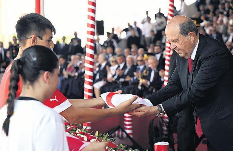 Kuzey Kıbrıs Türk Cumhuriyeti Cumhurbaşkanı Ersin Tatar, Kıbrıs Barış Harekâtı’nın 50. yıl dönümü kapsamında Dr. Fazıl Küçük Bulvarı’nda düzenlenen geçit töreninde konuştu. Cumhurbaşkanı Tatar, “Ana vatan Türkiye Cumhuriyeti, uluslararası antlaşmalardan kaynaklanan garantörlük hakkını kullanarak 20 Temmuz 1974 sabahı Barış Harekâtı’nı gerçekleştirme kararı almıştı. Türk askeri Girne sahillerine ayak basarken, paraşütlerle de gökten yağmur gibi toprağa iniyordu. O gün, halkımız ve mücahitlerimiz büyük bir özlemle Mehmetçikle kucaklaşırken sevinç gözyaşları hala hafızalarımızdan silinmemiştir” ifadelerini kullandı.
