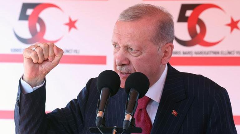 Cumhurbaşkanı Erdoğan’ın açıklamaları şöyle; 20 Temmuz Barış ve Özgürlük Bayramı’nın 50. yıl dönümü vesilesiyle Kuzey Kıbrıs Türk Cumhuriyeti’ne gerçekleştirdiğimiz ziyaretimizi tamamlamış bulunuyoruz. Bu tarihi günde Türkiye ile KKTC arasındaki sarsılmaz bağları bir kez daha vurguladık. Bundan 50 sene önce olduğu gibi bugün de ana vatan ve garantör devlet olarak Kıbrıs Türkünün yanındayız. İktidar ve muhalefet olarak verdiğimiz birlik, beraberlik ve dayanışma tablosunu bu bakımdan kıymetli görüyorum. Kıbrıs davasının sadece bizim değil, 85 milyonun davası, kırmızı çizgisi olduğu böylece anlaşılmıştır. Şunun bir defa anlaşılması gerekir. Ada’nın asli unsuru olan Kıbrıs Türk halkını azınlık olarak görmeye ve göstermeye kimsenin gücü yetmez.