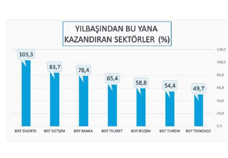BIST endekslerinin performanslarına göre en dikkat çekici yükseliş sigorta sektöründe gerçekleşti. BIST Sigorta Endeksi yüzde 103 artışla yılbaşından bu yana en yüksek çıkışı sergiledi. BIST İletişim Endeksi yüzde 84 artış kaydederken, BIST Banka Endeksi yüzde 78 artış gösterdi. Yılbaşından bu yana BIST Ticaret yüzde 65, BIST Bilişim yüzde 59, BIST Turizm yüzde 54 ve BIST Teknoloji yüzde 50 getiri sağladı. Bu veriler, sigorta, iletişim ve banka sektörlerinin son altı aylık getirilerde öne çıktığını gösteriyor.