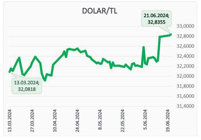 Gram altın, alış 2.482 TL, satış 2.504 TL. Geçen hafta gram altının satış değeri 2.446 TL idi. Altında 58 TL yükseliş gerçekleşti. Dolar/TL kuru ise 33 liraya yaklaştı. Bu hafta dolar yüzde 0,45 değer kazanarak 32,8330 liraya çıkarken, euro yüzde 0,60 artışla 35,1160 liraya yükseldi. Gram altında ara ara geri çekilmeler yaşansa da uzun vadede yükseliş eğilimi devam edecektir.
