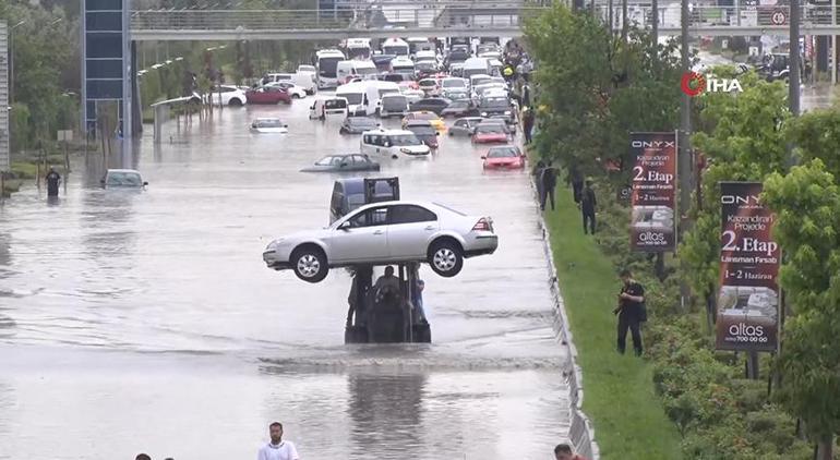 Ankara’da D140 karayolunda çok sayıda araç sular altında kaldı